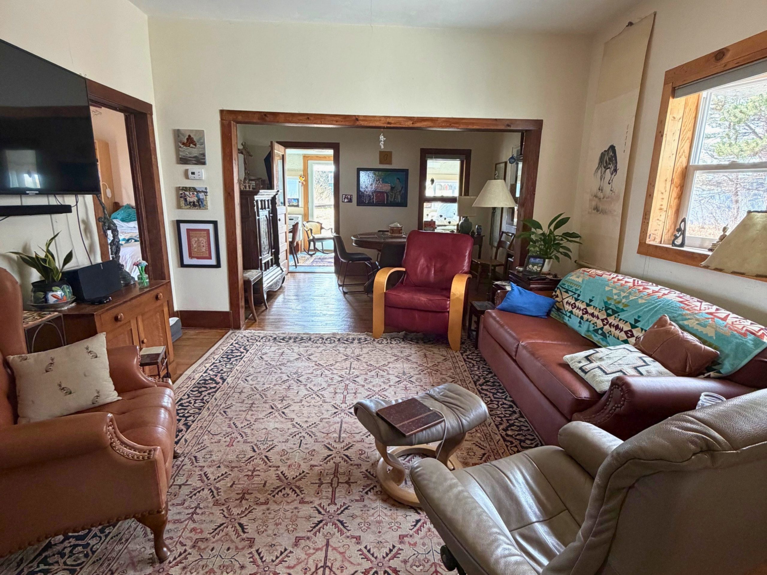 The ranch features a full compliment of functional improvements, anchored by a charming and tidy, remodeled 1 story ranch house, shops, barns and pens.